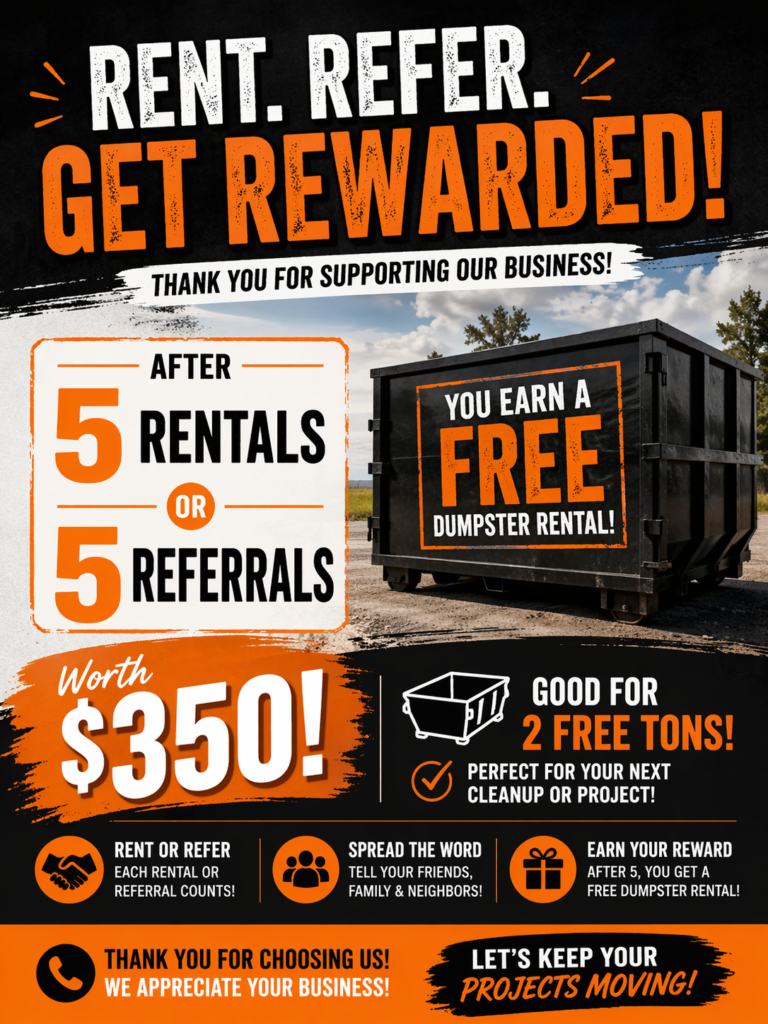 Affordable roll-off dumpster rentals for residential and commercial projects.